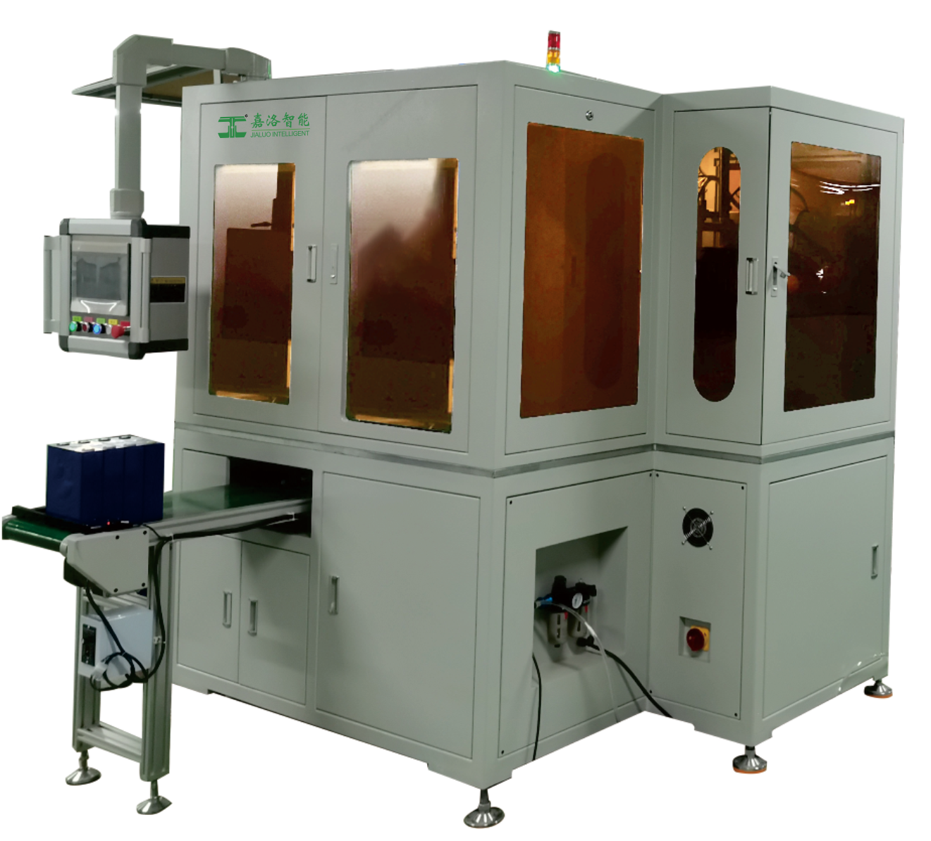 该设备用于方形铝壳电池宽面、窄面及底部及顶部包蓝膜。该设备兼容 性好,换型不用换夹具;对大面 一 定程度的下陷不平亦能实现完美包膜。